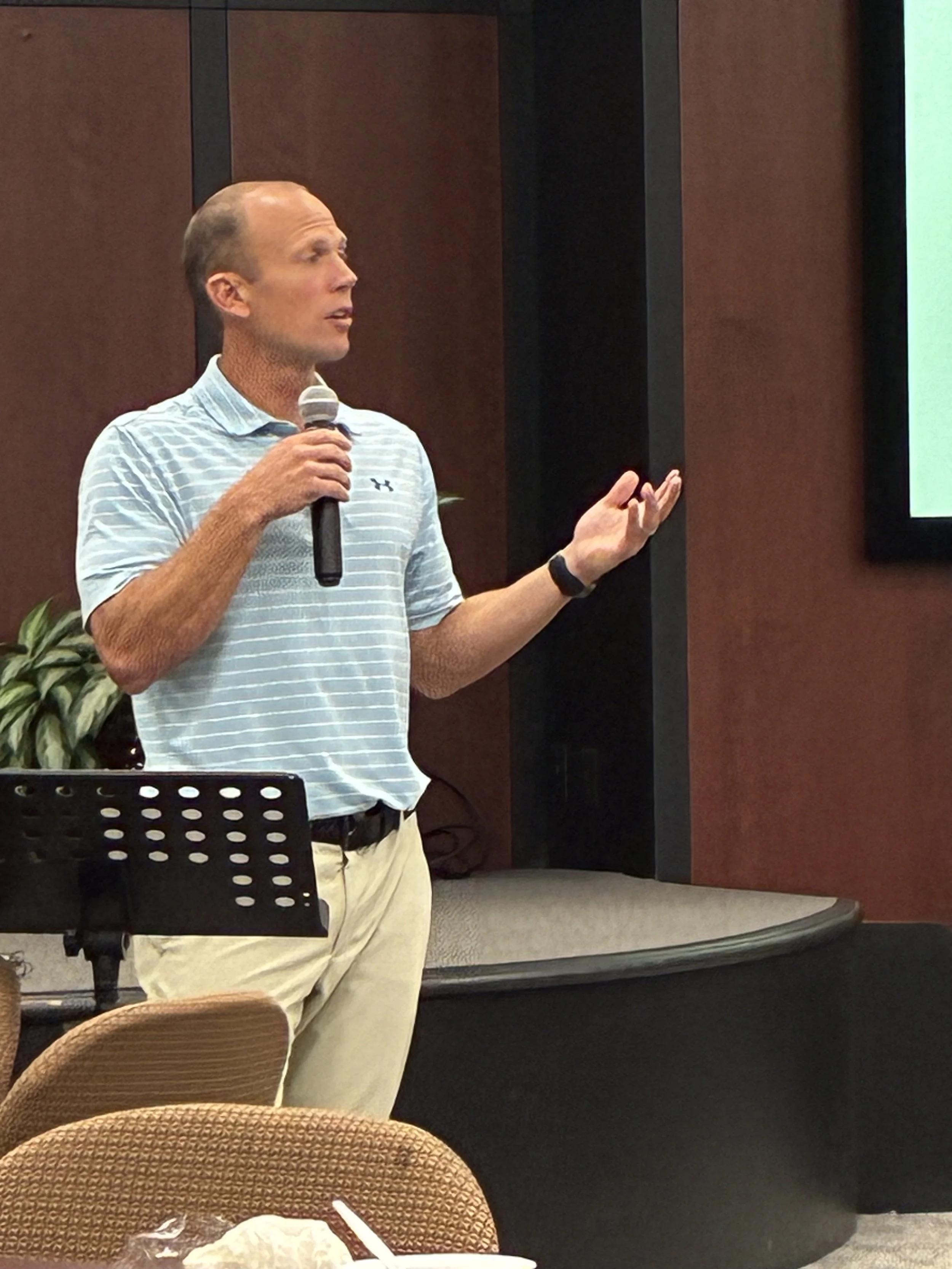Joe Gibbs Racing Chaplain and Church Coach Ken Cross leading Wednesday Bible Study